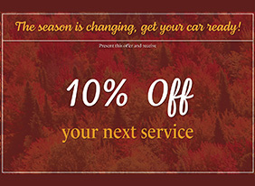 10% off parts and labor. Cannot be combined with other offers. Some restrictions may apply. One time use. See shop for details.